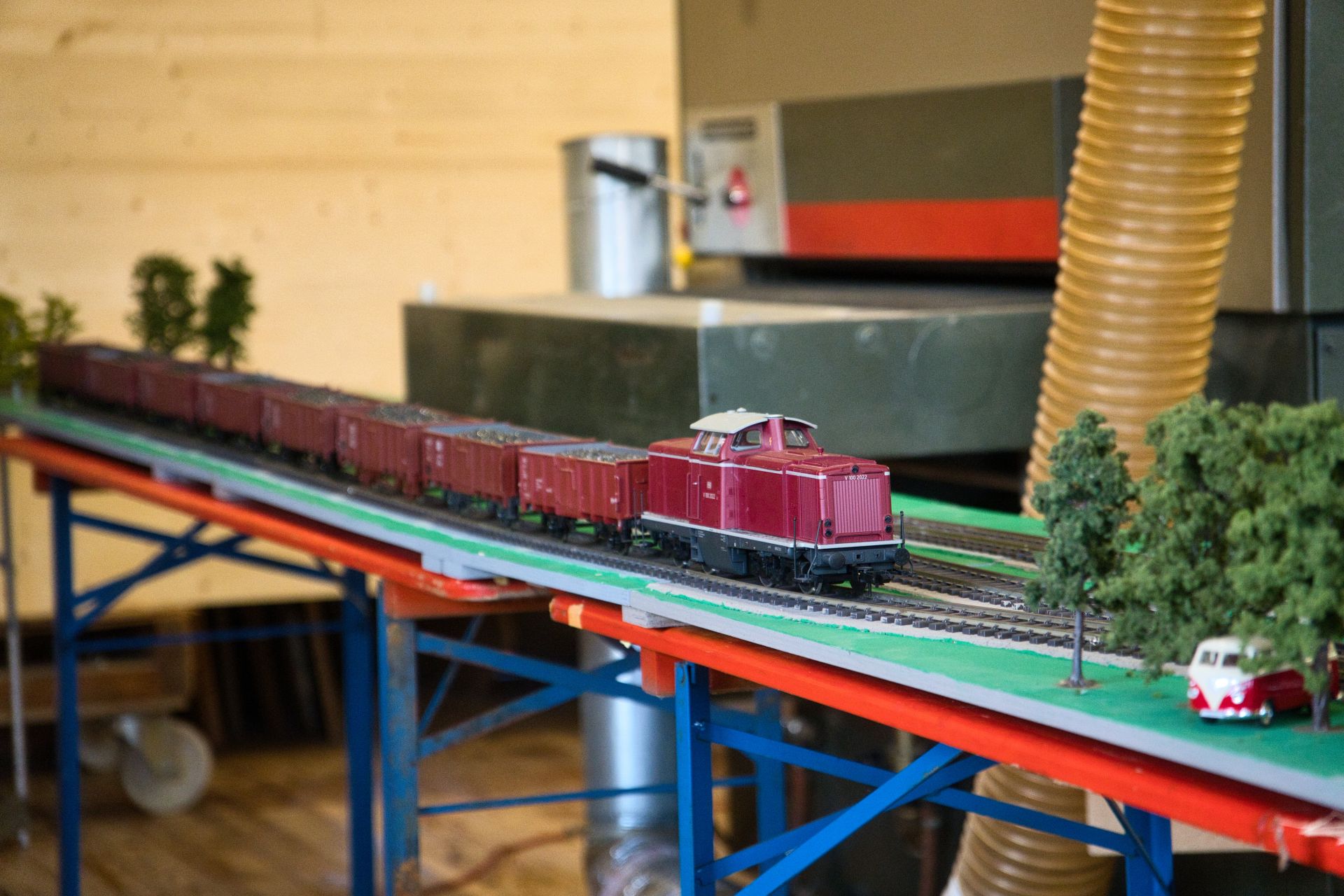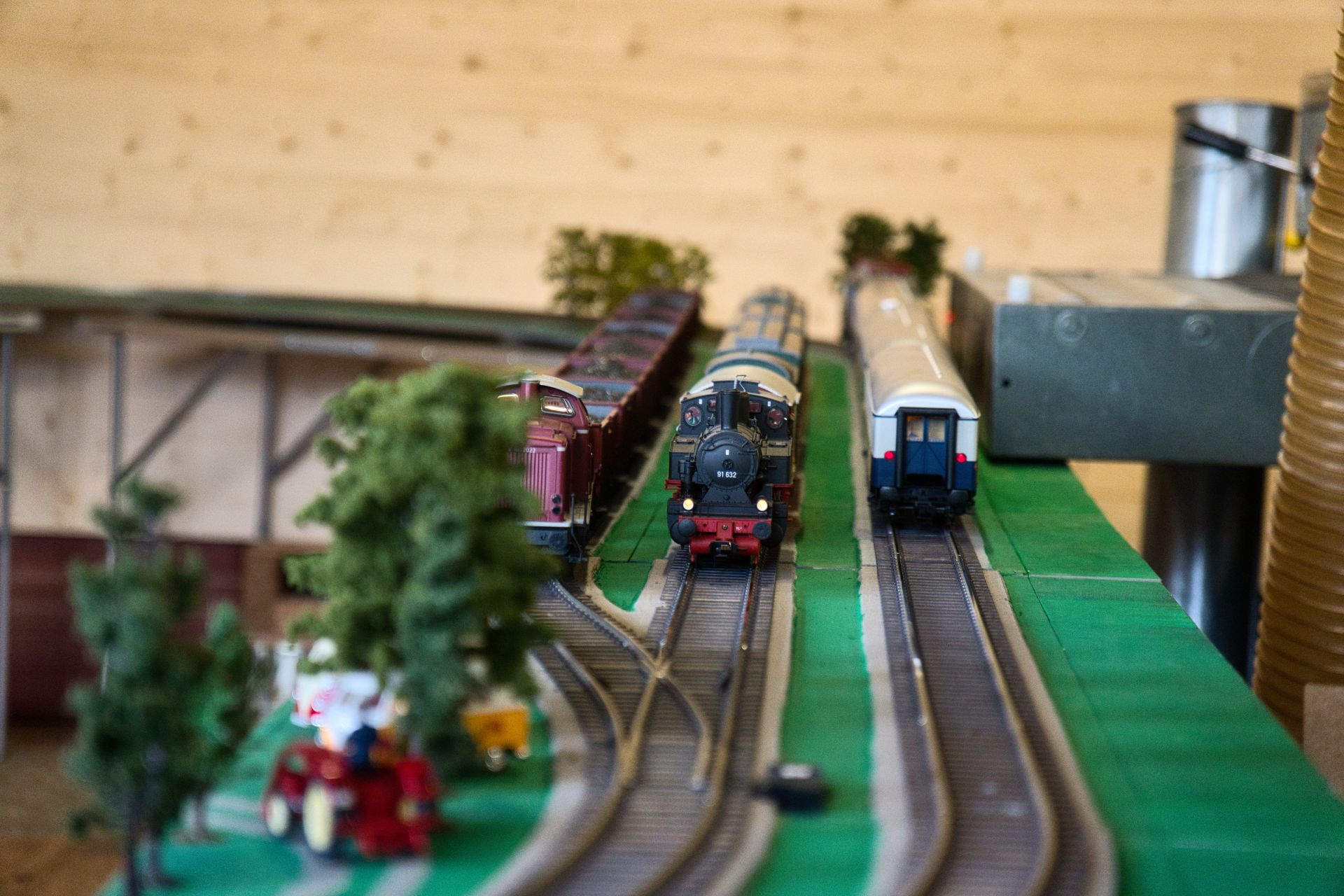 Da wäre zuerst die Familie Borrmann zu erwähnen: Bernhard Borrmann hatte eine alte Märklin-Bahn mit M-Gleisen, die zum Teil noch aus der Vorkriegszeit stammen, aufgebaut. Sein Sohn Roland und sein Enkel Maxi präsentierten eine Bahn, die es bei Fischer-Technik gab. Und der ganz kleine Enkel Lucas war unermüdlich mit seiner Lego-Duplo-Bahn beschäftigt. Vom Urgroßvater Borrmann gab es noch alte TT-Fahrzeuge zu sehen, zum Teil Eigenbauten.