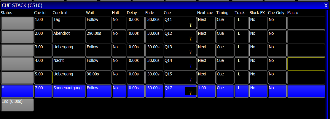 Der aktuelle Tageszyklus dauert 9,5 Minuten und folgt dem im Bild 1 dargestellten Ablauf.