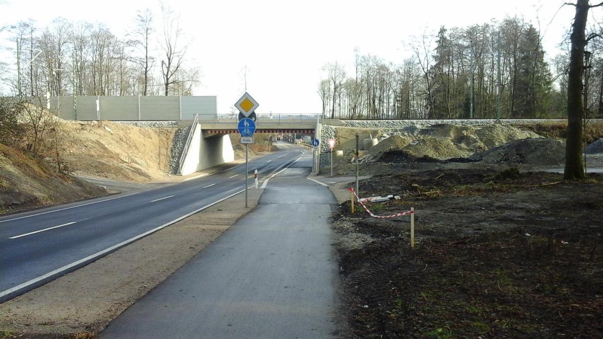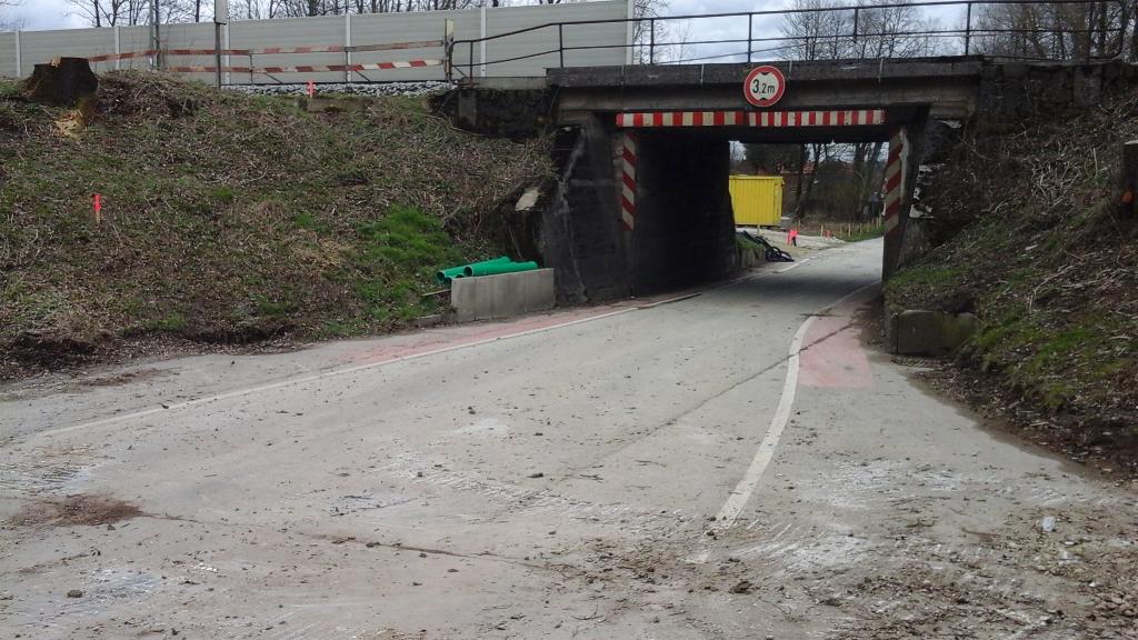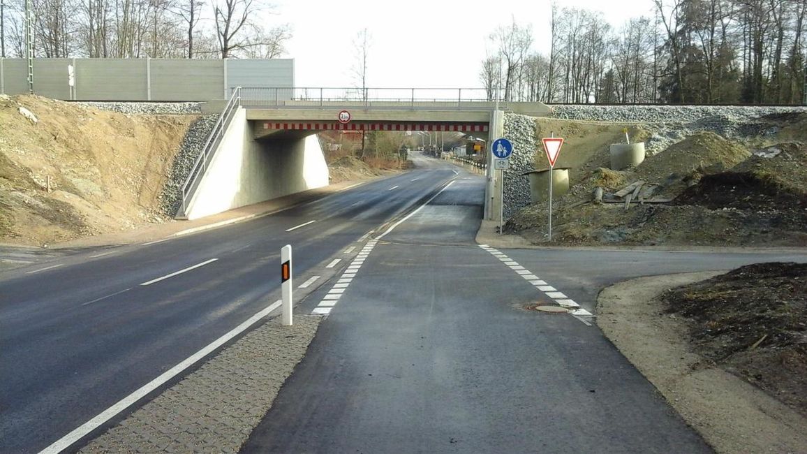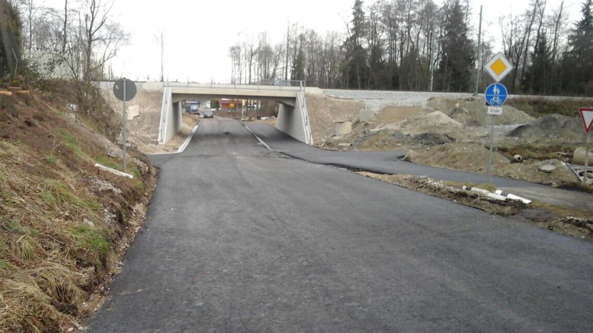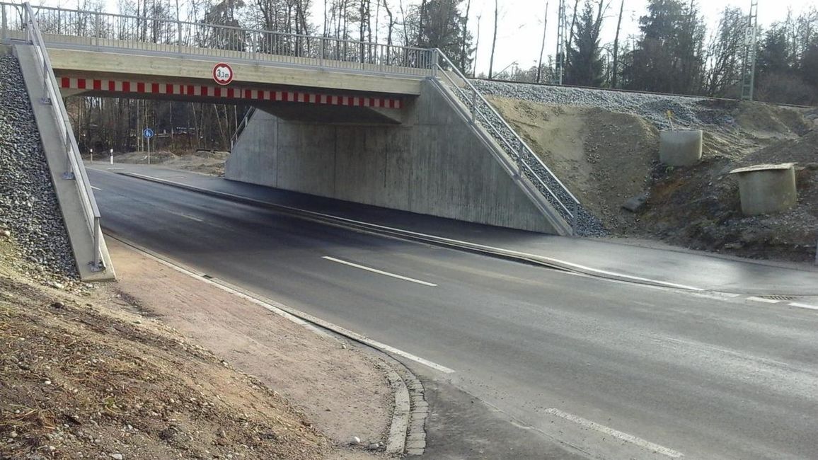 Nach Übergabe der Baustelle Anfang November 2015 durch DB Netz an die Stadt Rosenheim konnte diese nun das Straßenplanum herrichten. Vorerst nur mit einer Durchfahrhöhe von 3,30 m (gegenüber 3,20 m der alten Unterführung). Bevor nicht die Westtangente fertiggestellt ist, möchte man damit seitens der Stadt Rosenheim verhindern, dass größere LKW diese Unterführung benutzen. Der Unterbau ist aber soweit vorbereitet, dass eine spätere Tieferlegung der Straße nicht allzu große Umstände macht.