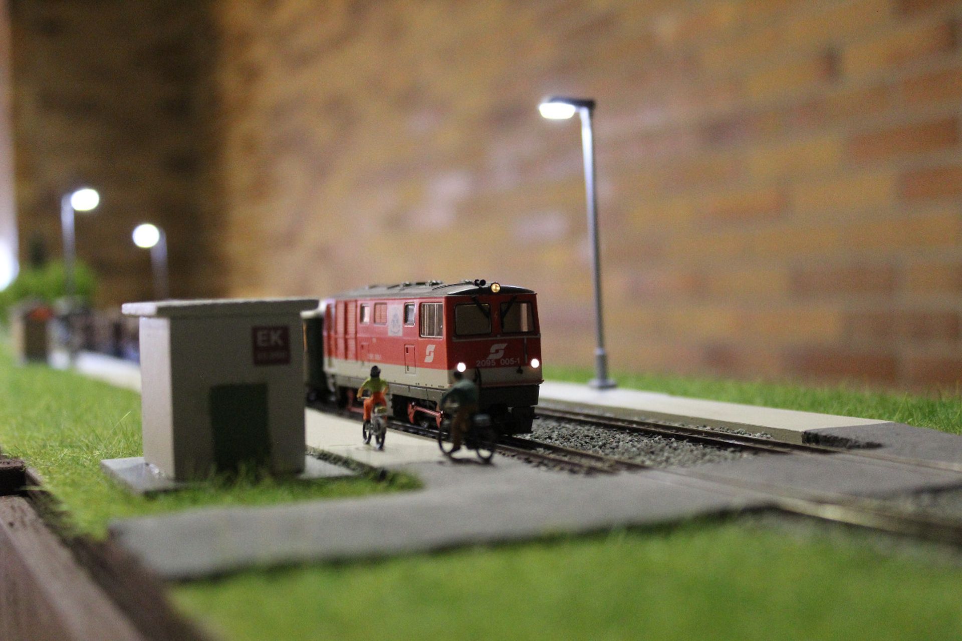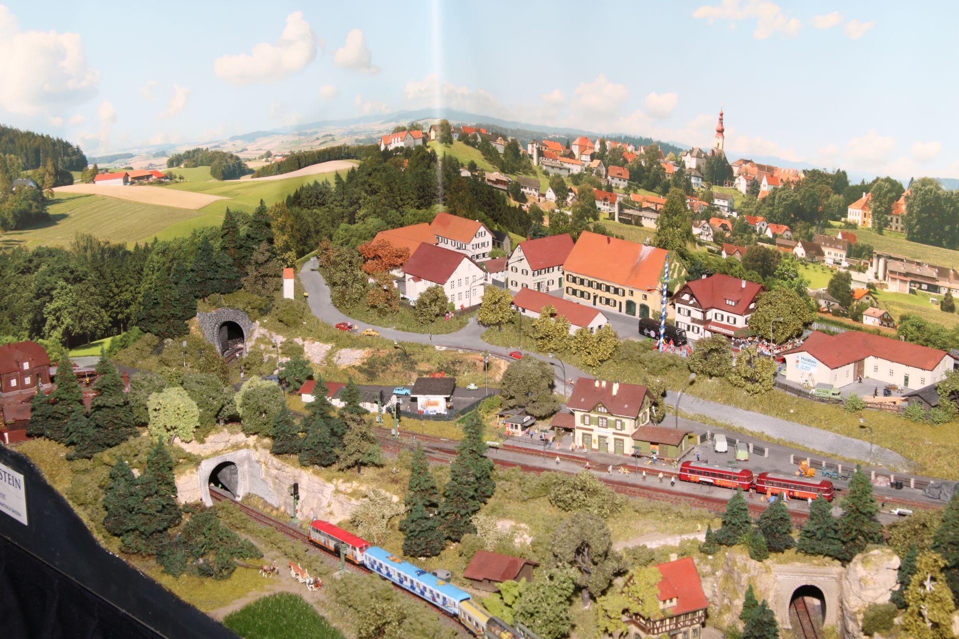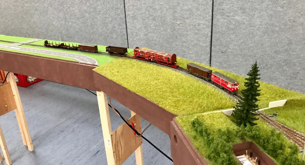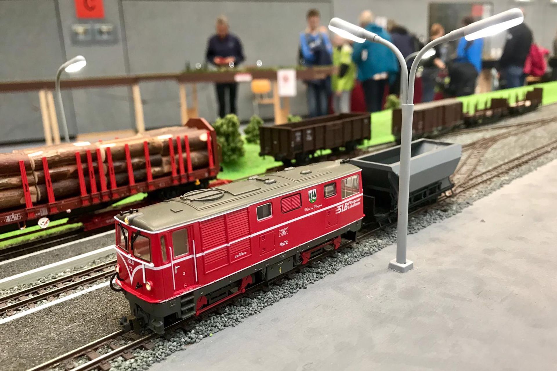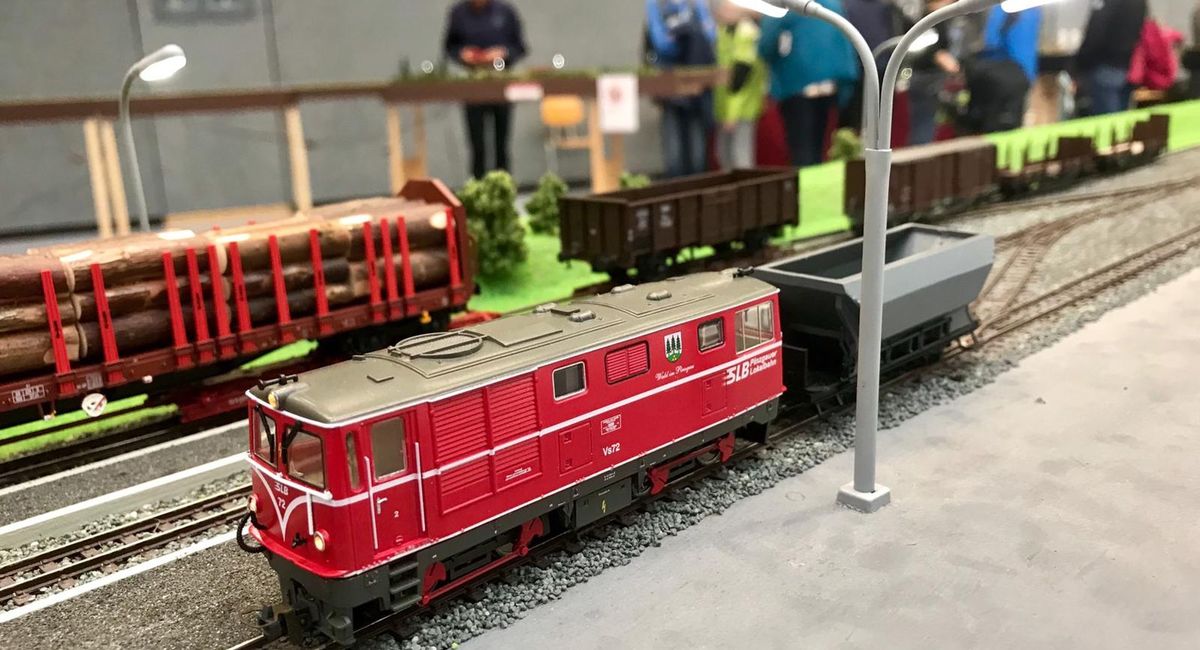 Schließlich beeindruckte die 25 Meter lange Spur H0e-Modul-Anlage von Matthias Hell, auf der er markante Teile der Pinzgauer Lokalbahn mit mehreren Stationen darstellte. Auch diese Module entstanden in Eigenbau. Bei Aufbau und Betrieb wurde er von Johannes Gleis, Alex Blenk, Niklas Gürntke und Andi Mayer unterstützt.