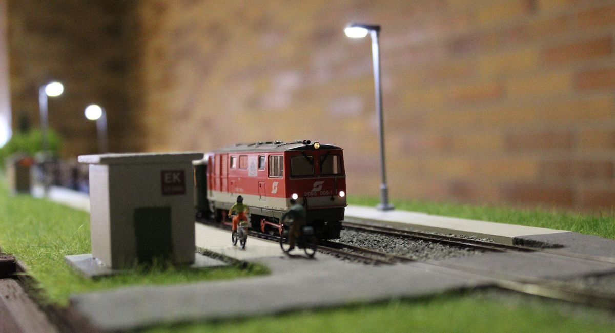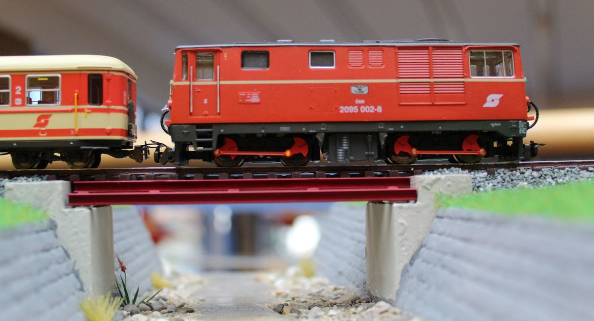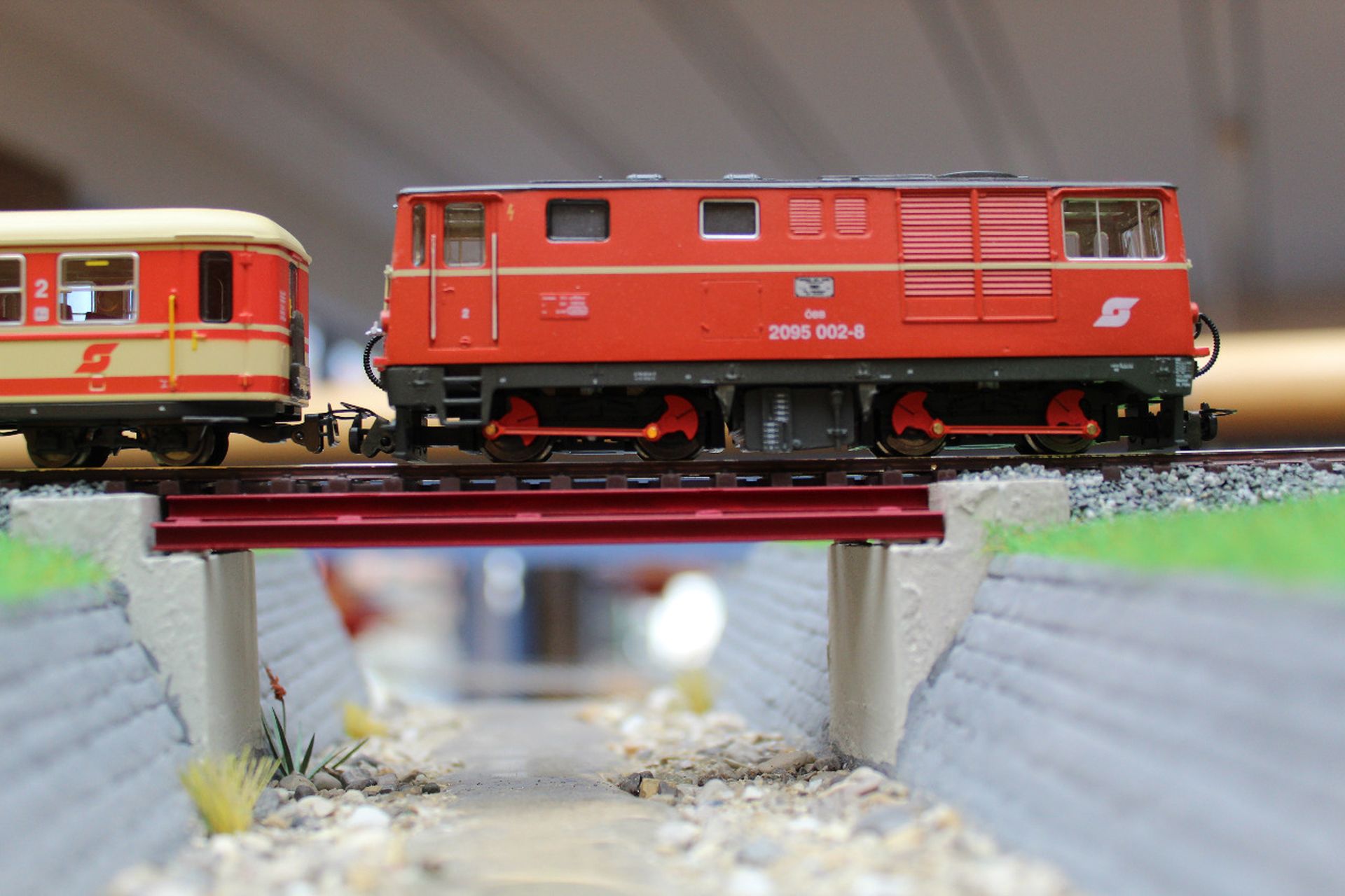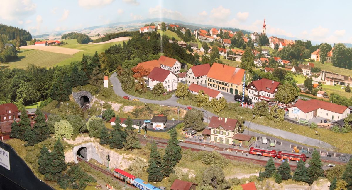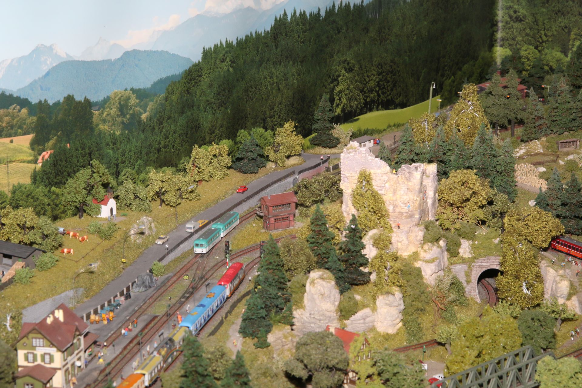 Schließlich beeindruckte die 25 Meter lange Spur H0e-Modul-Anlage von Matthias Hell, auf der er markante Teile der Pinzgauer Lokalbahn mit mehreren Stationen darstellte. Auch diese Module entstanden in Eigenbau. Bei Aufbau und Betrieb wurde er von Johannes Gleis, Alex Blenk, Niklas Gürntke und Andi Mayer unterstützt.