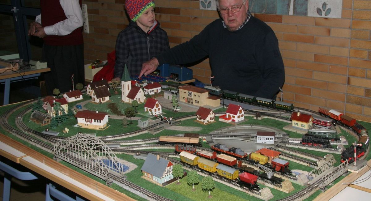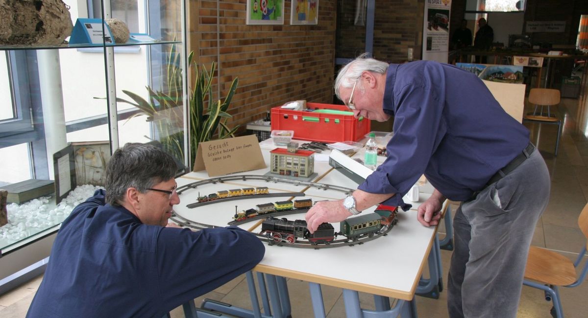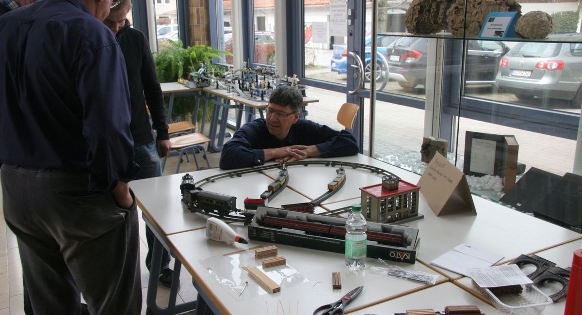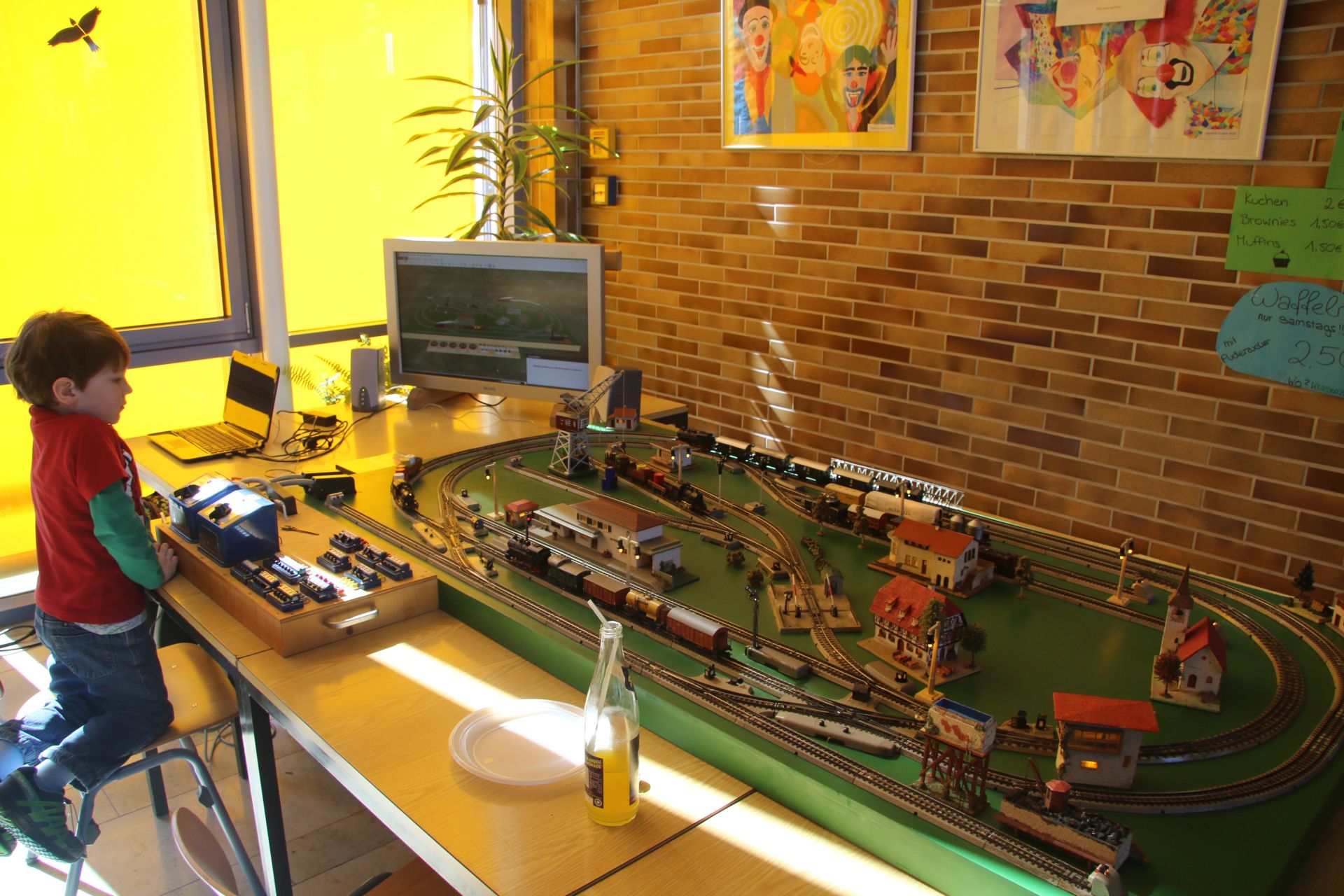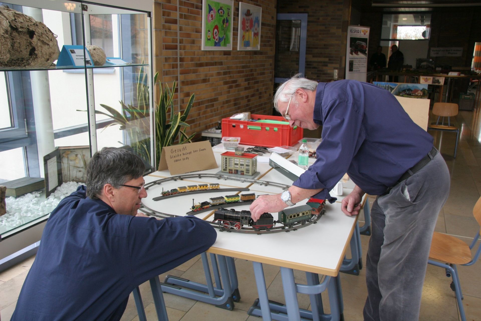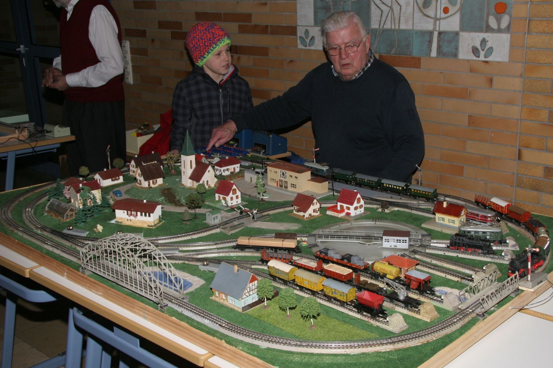 Zwei Schüler der Michael-Ende-Schule präsentierten ihre inzwischen beachtlich große Märklin-Bahn in H0, eine Verbindung von altem und neuem Material.