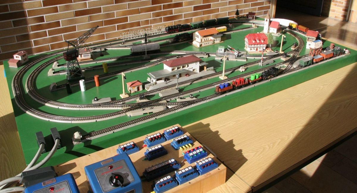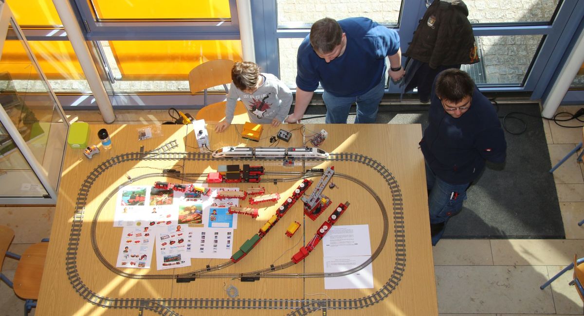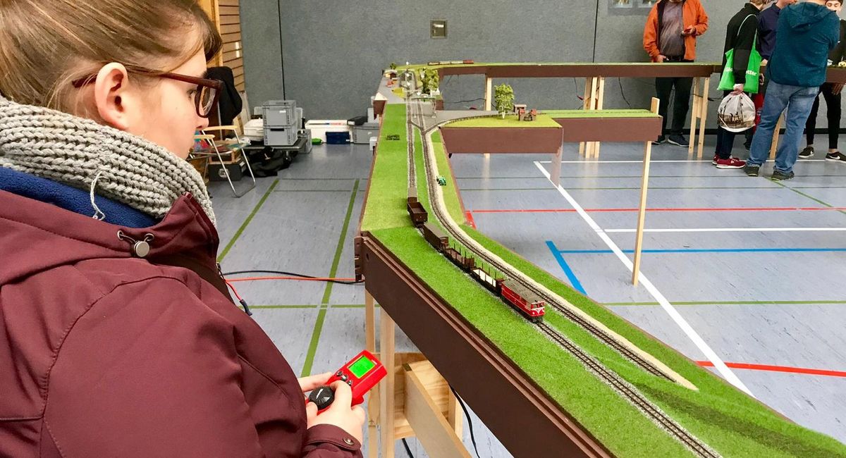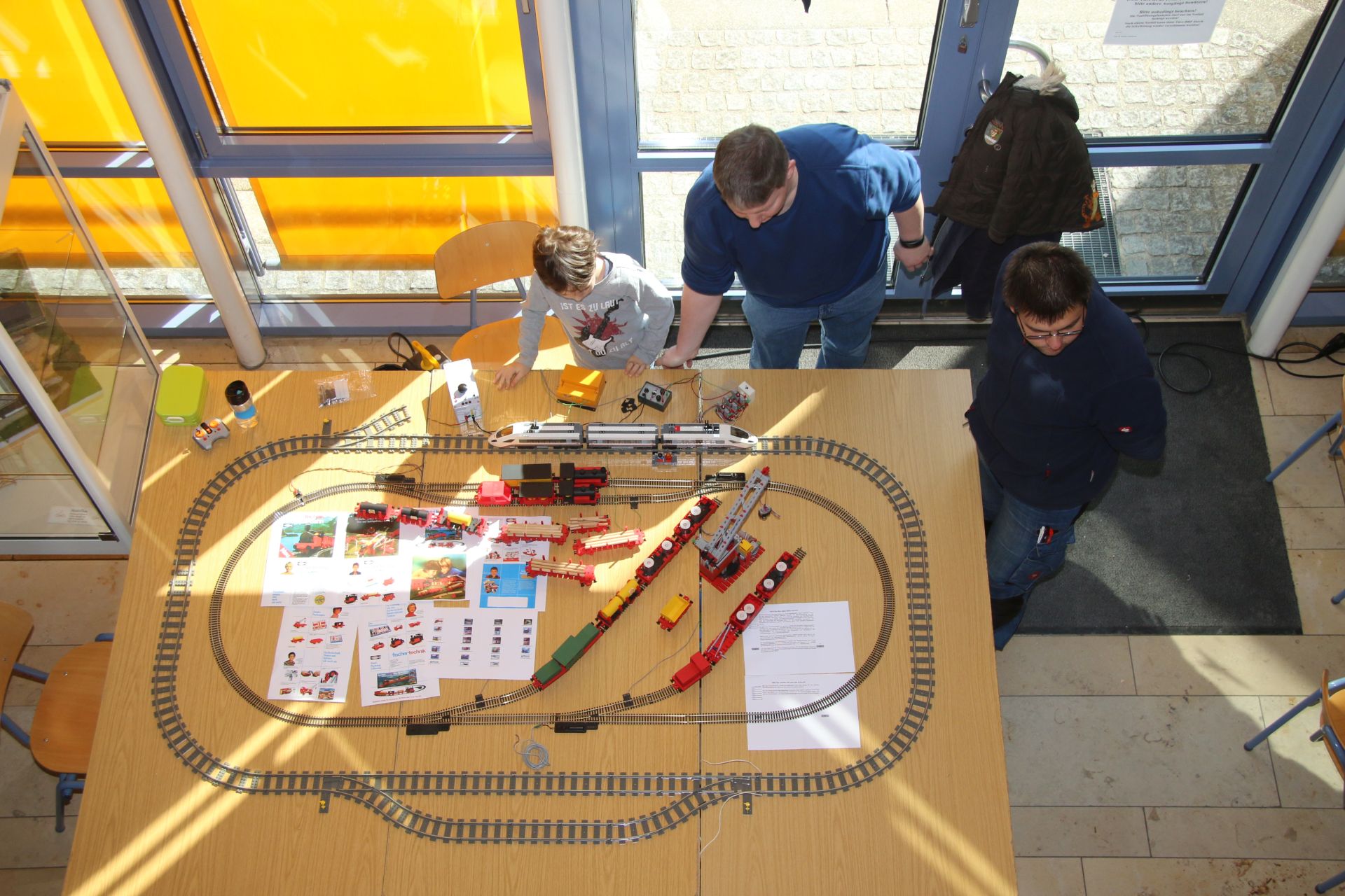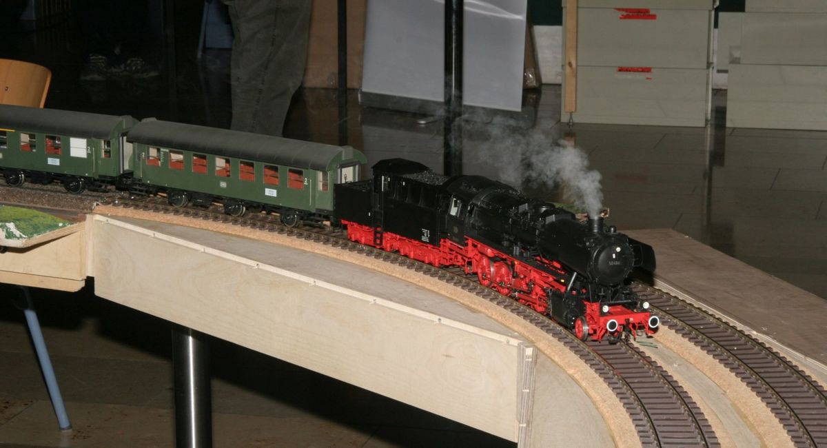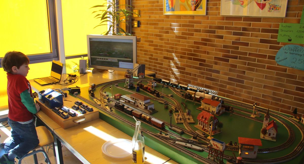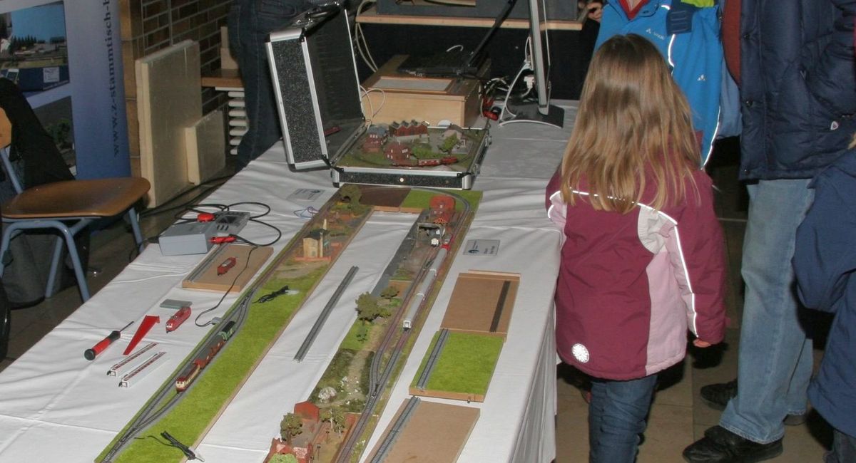 Zwei Schüler der Michael-Ende-Schule präsentierten ihre inzwischen beachtlich große Märklin-Bahn in H0, eine Verbindung von altem und neuem Material.