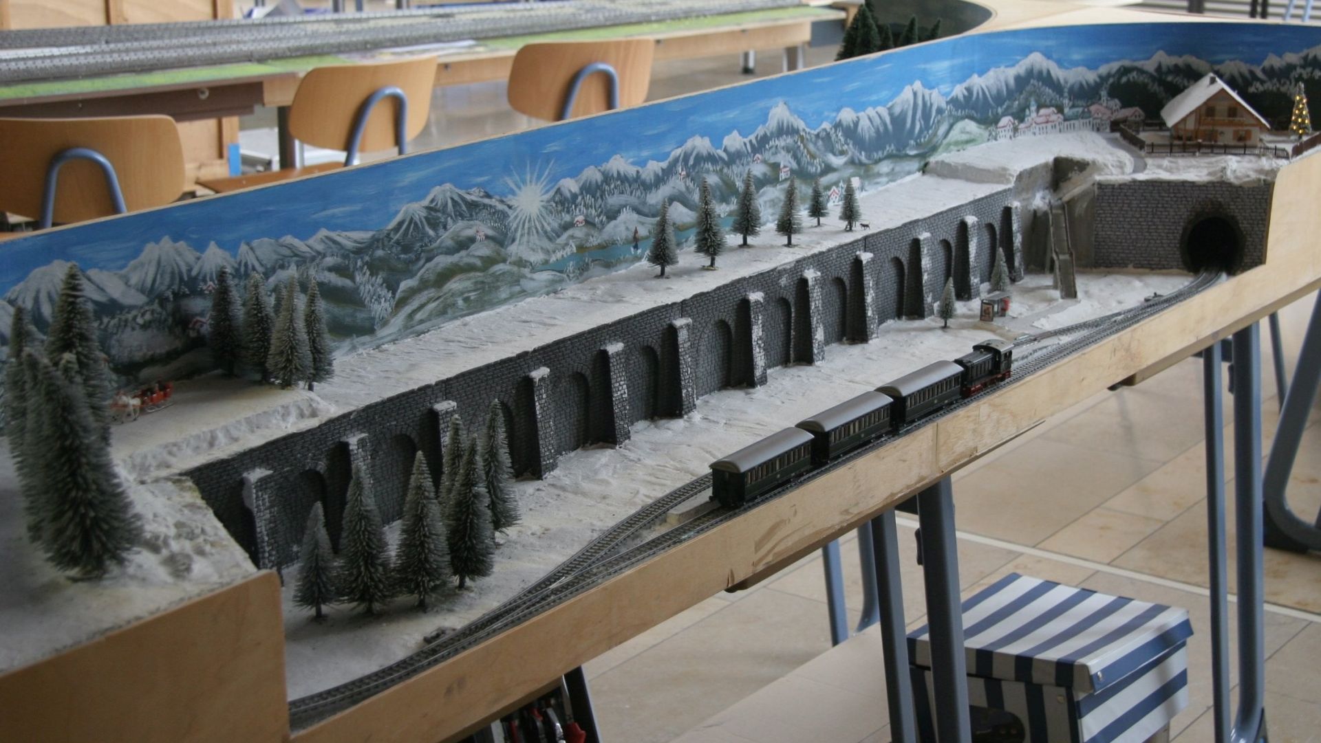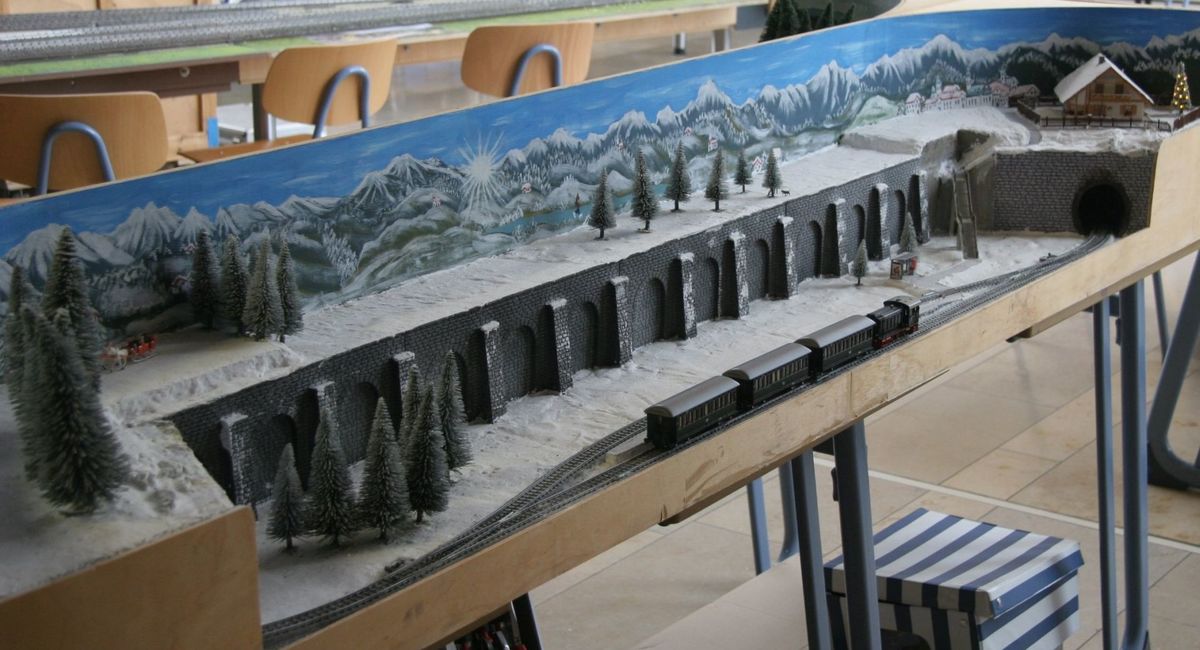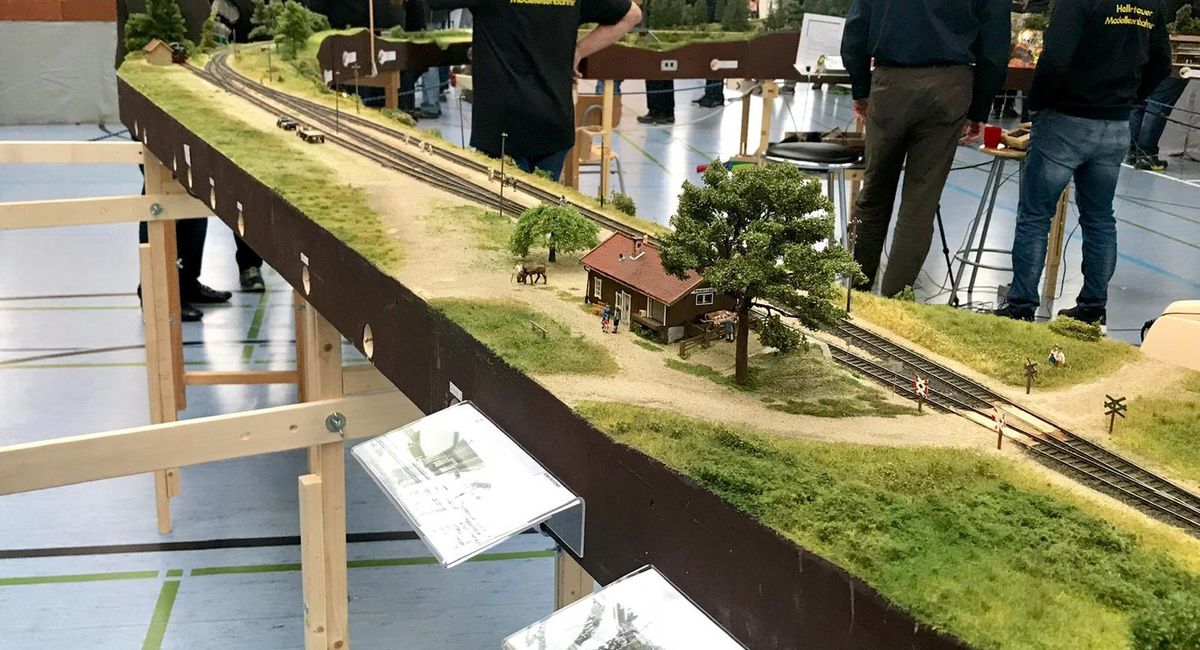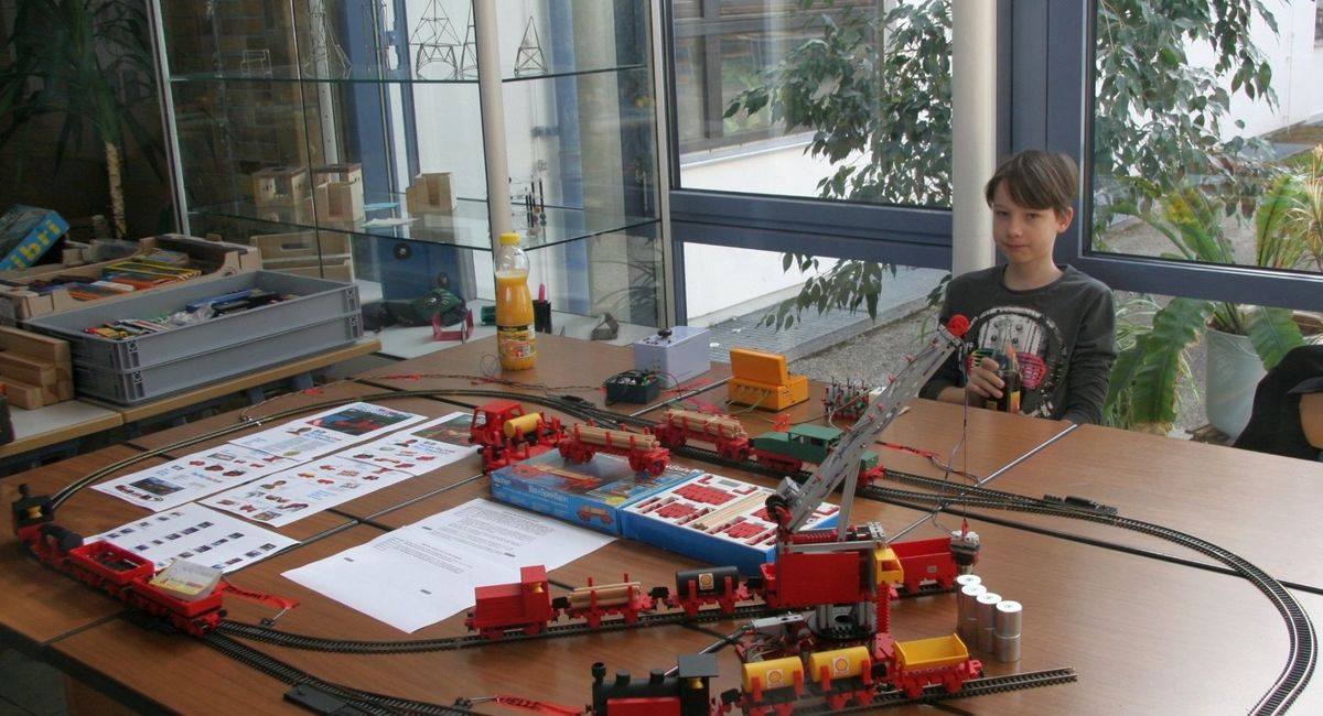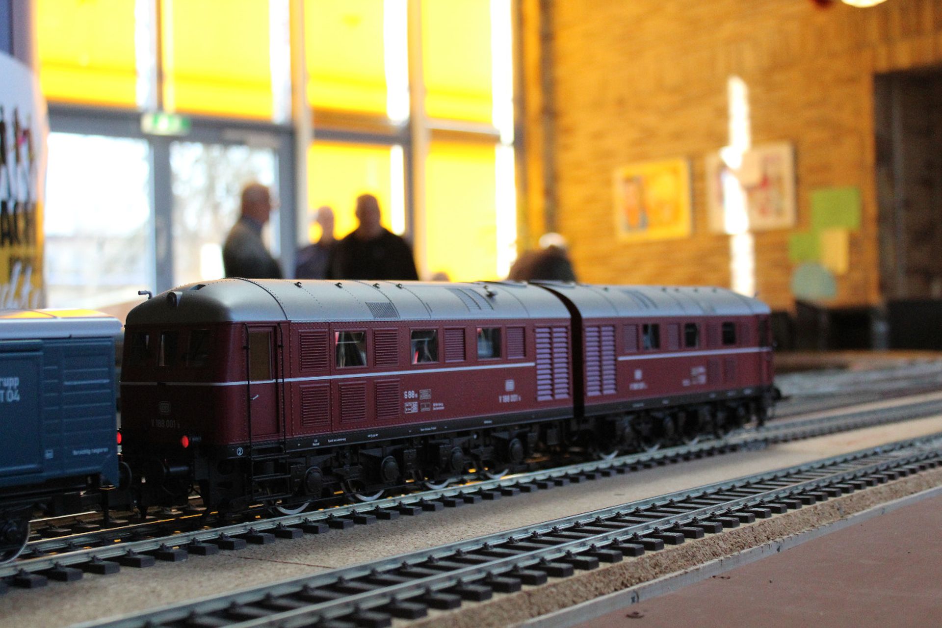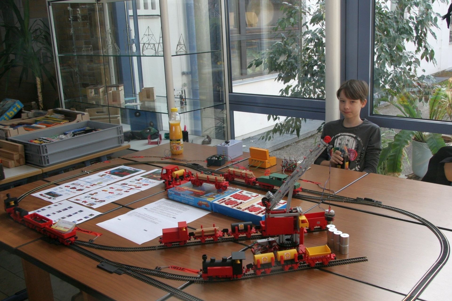 Zwei Schüler der Michael-Ende-Schule präsentierten ihre inzwischen beachtlich große Märklin-Bahn in H0, eine Verbindung von altem und neuem Material.