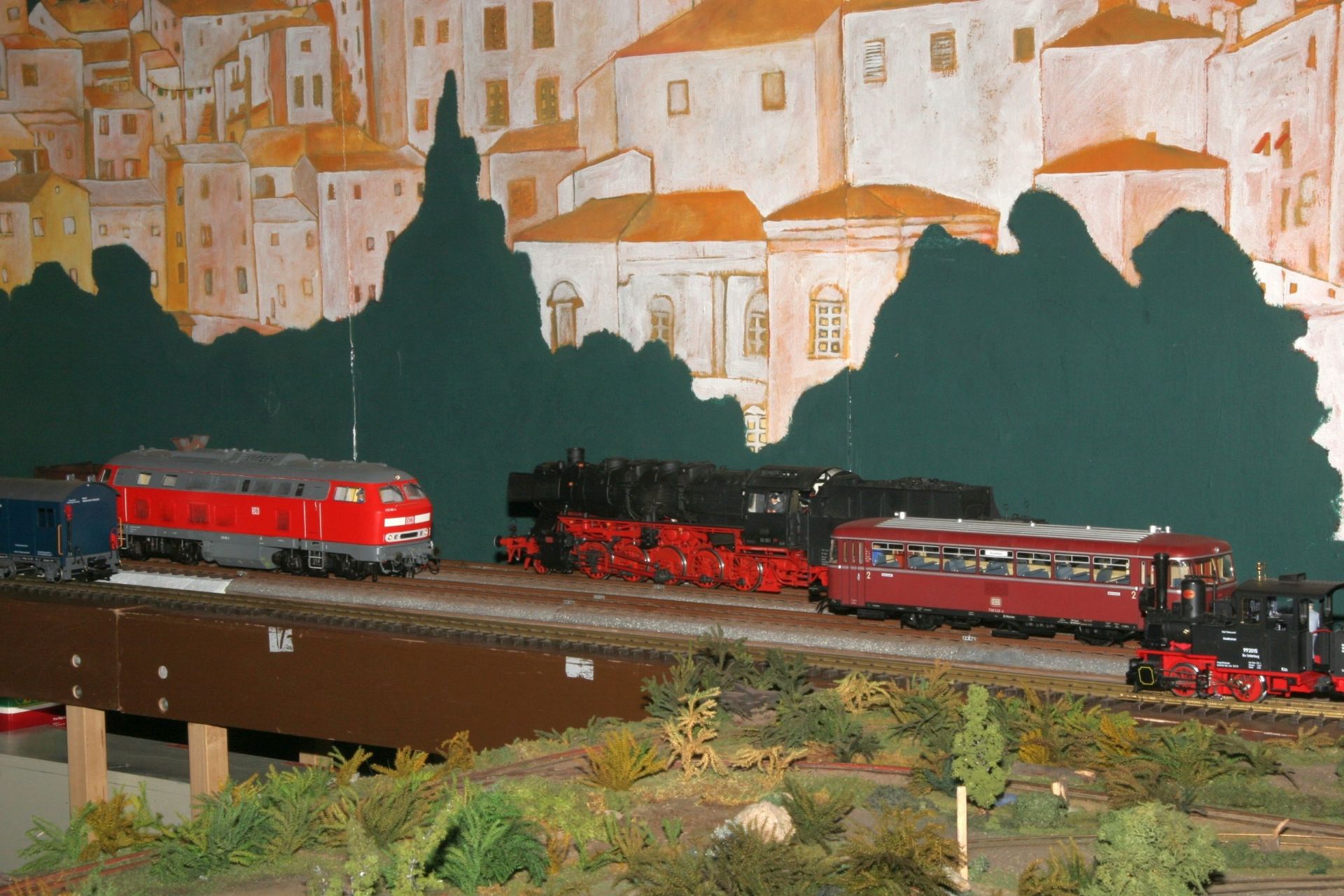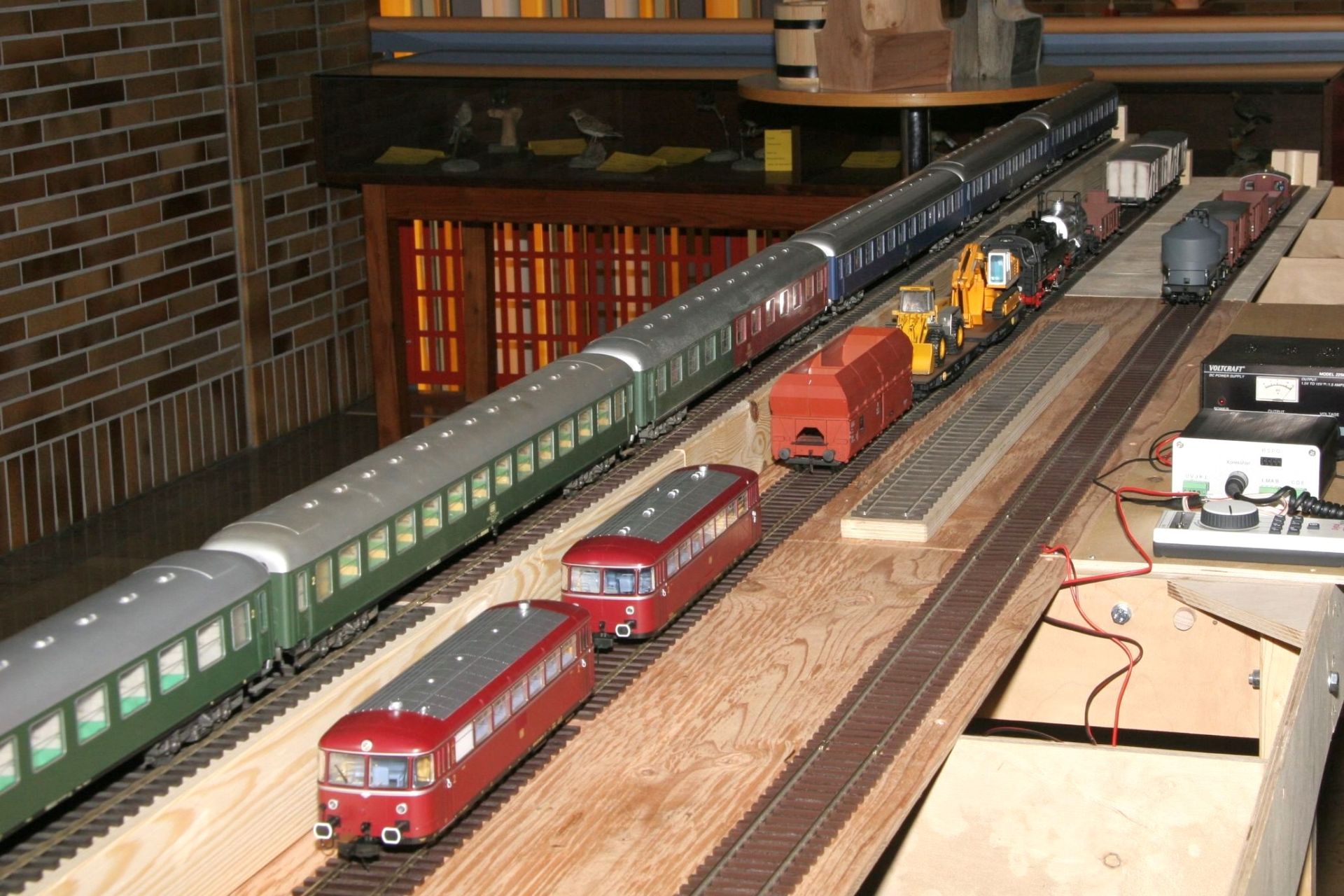 Wolfgang Gillich präsentierte neben einer Fülle von Fahrzeugen in H0 nach amerikanischen Vorbildern einen Galaxy-Star-Express von Lego. Fritz Schröder hatte eine alte Uhrwerkbahn und Otto Osiander eine weitere alte Märklin-Anlage aufgebaut. Rudi Stocker stellte eine Sommer-Winter-Anlage in H0 aus. Ebenso eine Z-Schatullenbahn, die seiner Ehefrau gehört. Auch die Spur N war diesmal durch Wolfgang und Ludwig Herrmann mit einer kleinen, aber feinen Anlage vertreten, dazu Häusermodelle mit Beleuchtungseffekten.