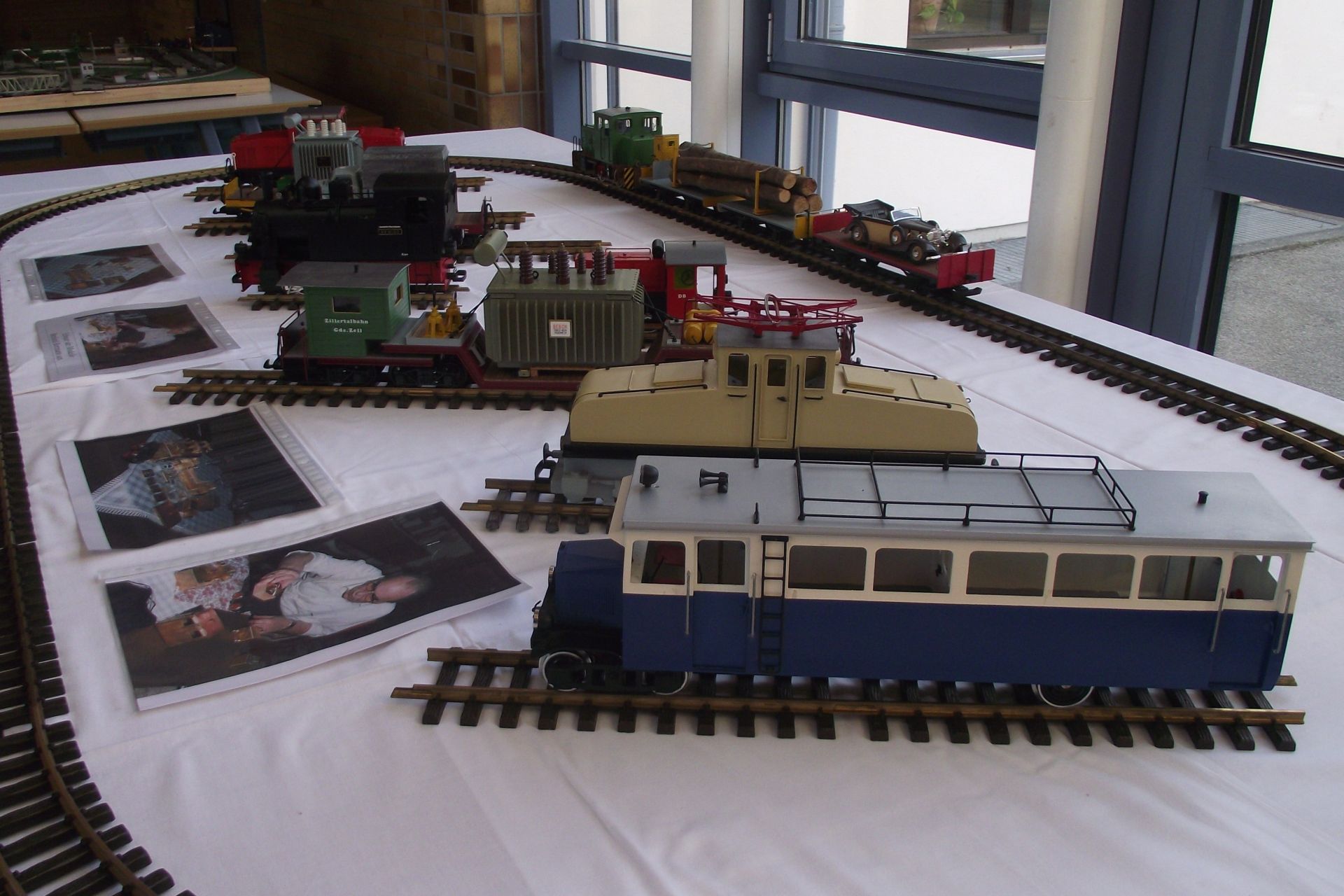 Werner Hübner präsentierte Modelle in der großen Spur 2 neben einer vorbildlich ausgestalteten und funktionsfähigen Feldbahn in der passenden Spurweite 2f.