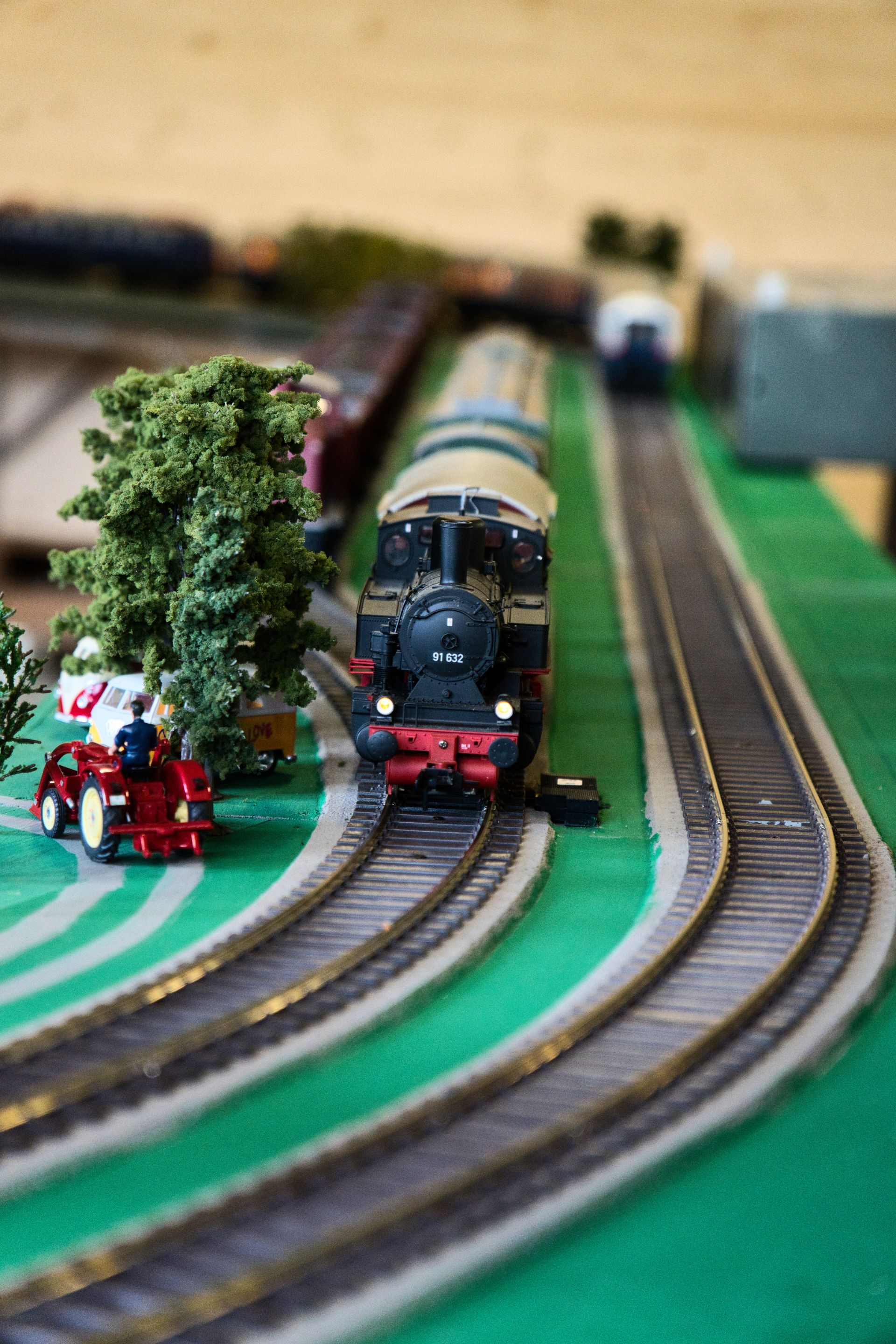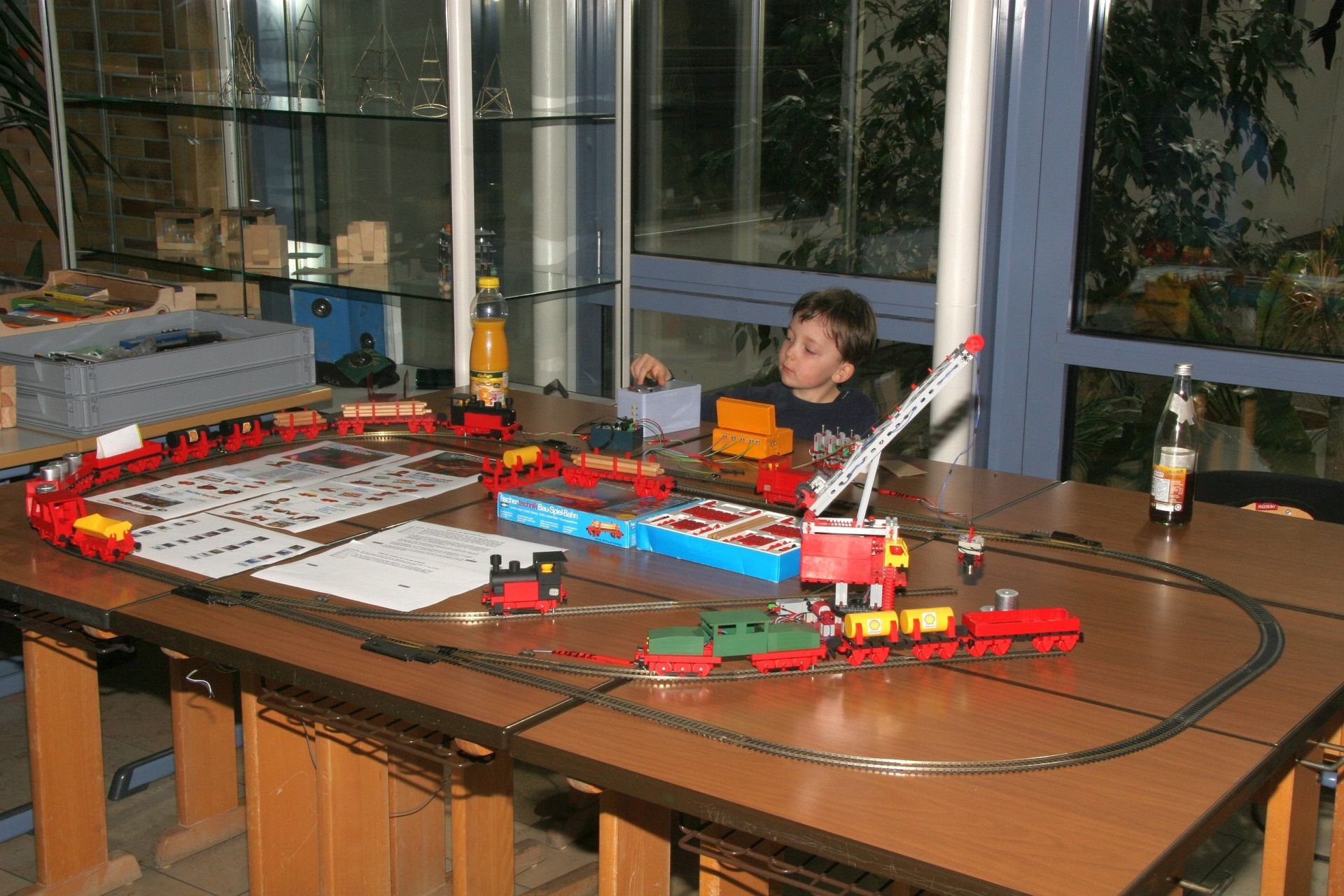 Da wäre zuerst die Familie Borrmann zu erwähnen: Bernhard Borrmann hatte eine alte Märklin-Bahn mit M-Gleisen, die zum Teil noch aus der Vorkriegszeit stammen, aufgebaut. Sein Sohn Roland und sein Enkel Maxi präsentierten eine Bahn, die es bei Fischer-Technik gab. Und der ganz kleine Enkel Lucas war unermüdlich mit seiner Lego-Duplo-Bahn beschäftigt. Vom Urgroßvater Borrmann gab es noch alte TT-Fahrzeuge zu sehen, zum Teil Eigenbauten.